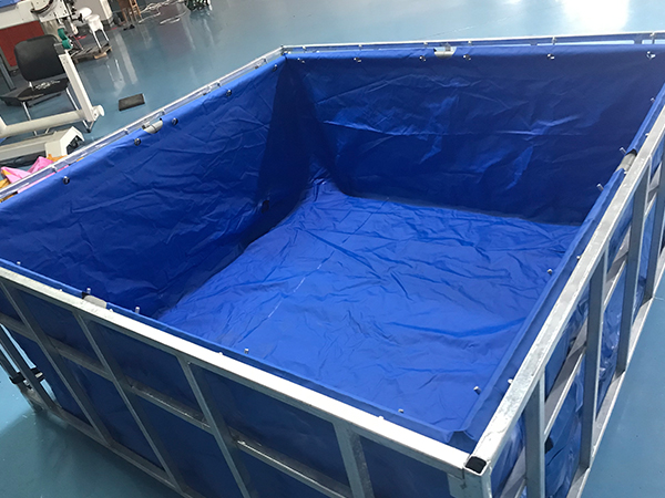 Nuestro estanque de cultivo de peces está hecho de tela de vinilo de alta calidad y un marco resistente. Es muy fuerte, puede contener toneladas de agua, además está hecho de tela de vinilo impermeable, por lo que es flexible, muy fácil de instalar y transportar. Generalmente, el estanque se hace en azul, si te gustan otros colores, también podemos hacerlo para ti. Y su tamaño se puede hacer en 1m x 1m x 0,7m, 1m x 1m x 1m, 2m x 1m x 1m, 2m x 1,5m x 1m, 2,5m x 2m x 1m, 3,5m x 2m x 1,2m, 4m x 2m x 1,2 m, 5m x 2,5m x 1,2m, 5m x 3,5m x 1,2m, ya medida. La tela de vinilo para el estanque tiene funciones anti-UV, retardante de llama, ecológica, a prueba de moho, autolimpiante para elegir. El peso del gramo de tela es de 600 gsm-1200 gsm para elegir. Bienvenido a consultar y ordenar nuestro estanque de piscicultura.