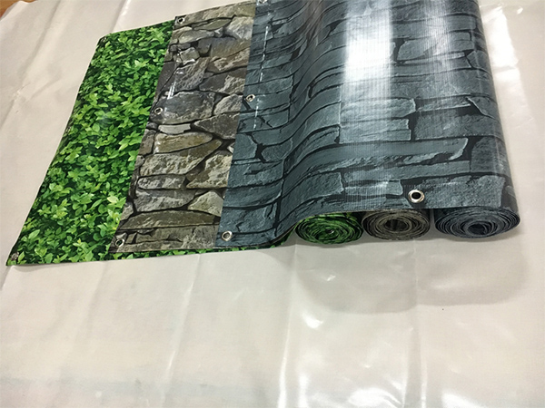 La pantalla de privacidad está hecha de material nuevo de PVC y PP de alta calidad, y tiene las funciones de anti-UV, resistencia a las heladas, resistencia al desgarro, etc. Este tipo de pantalla de privacidad se usa ampliamente para cubrir la barandilla para mantener la privacidad. Su tamaño total es de 90 cm x 6 m y 75 cm x 6 m, si te gusta otro tamaño, podemos hacerlo por ti. Se instala fácilmente con una cuerda a través de los ojales del pasamanos. Sus colores y pinturas son muy bonitos, brillantes y creativos. Para el color puro, puede elegir un código de color de la tabla de colores RAL y hacemos el color de acuerdo con él, y para el tipo de color, tenemos diseños de piedra, madera, hoja y tejido para que elija. Nuestra pantalla de privacidad puede decorar su jardín muy bellamente. Bienvenido a consultar y ordenar nuestra pantalla de privacidad.